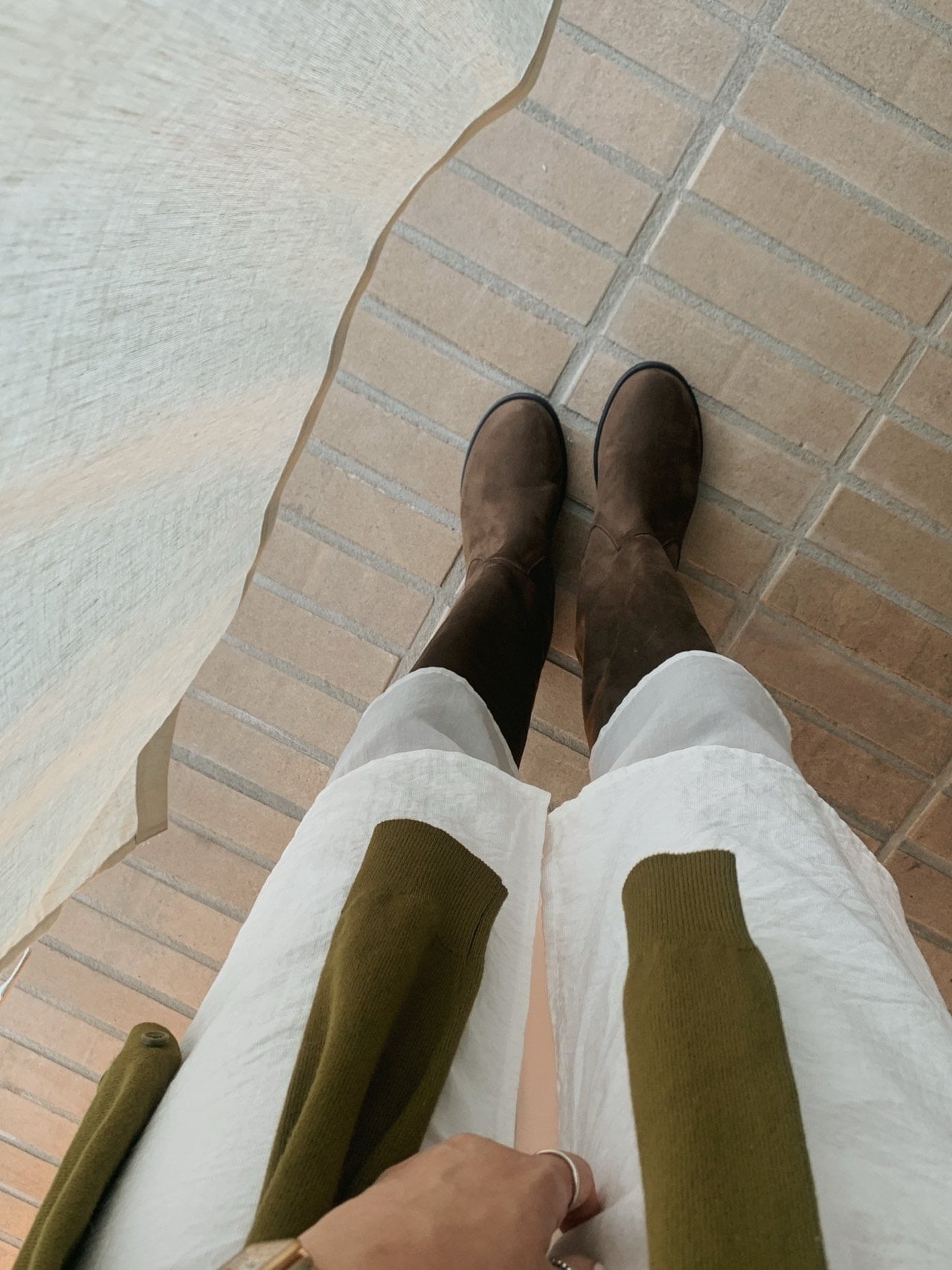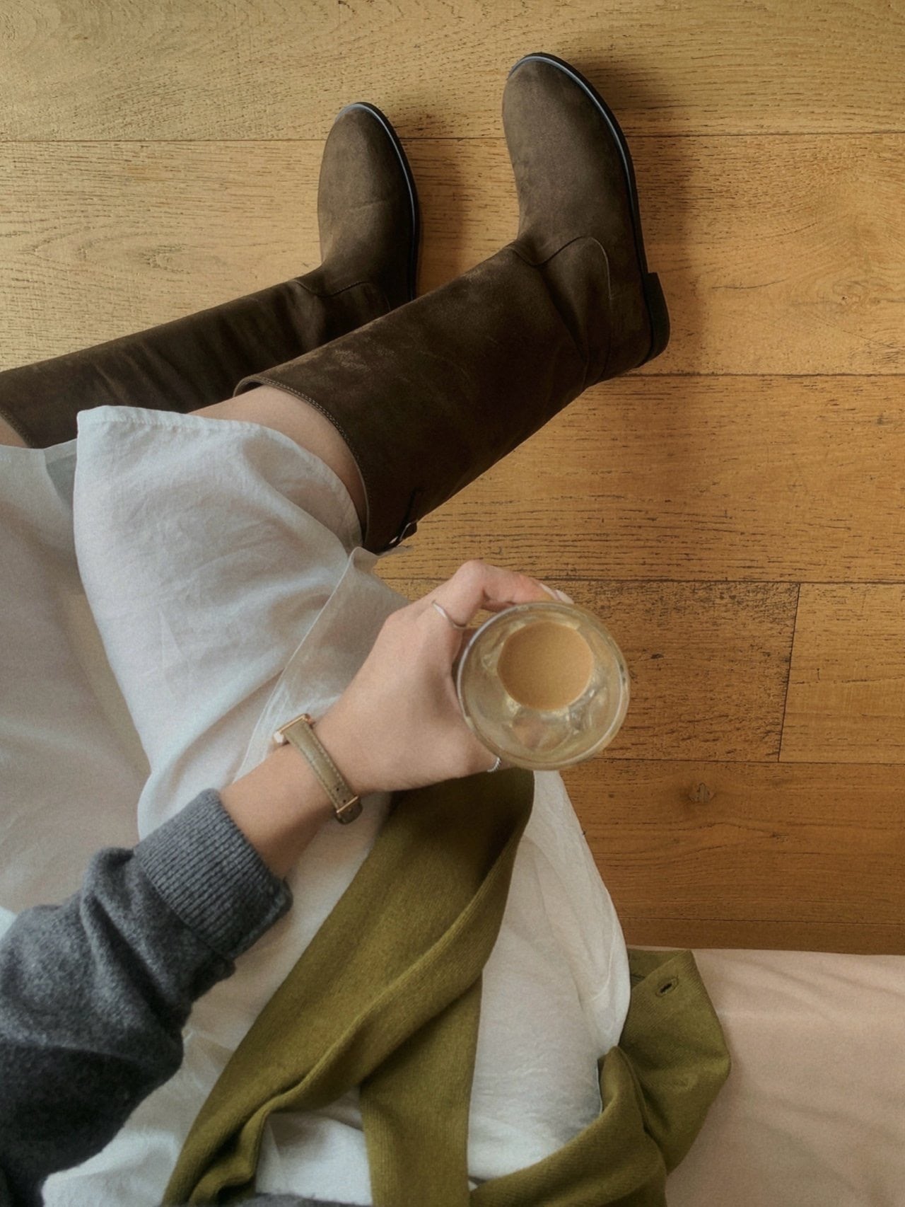 olive色がほのかに染み込んだブラウンカラーと