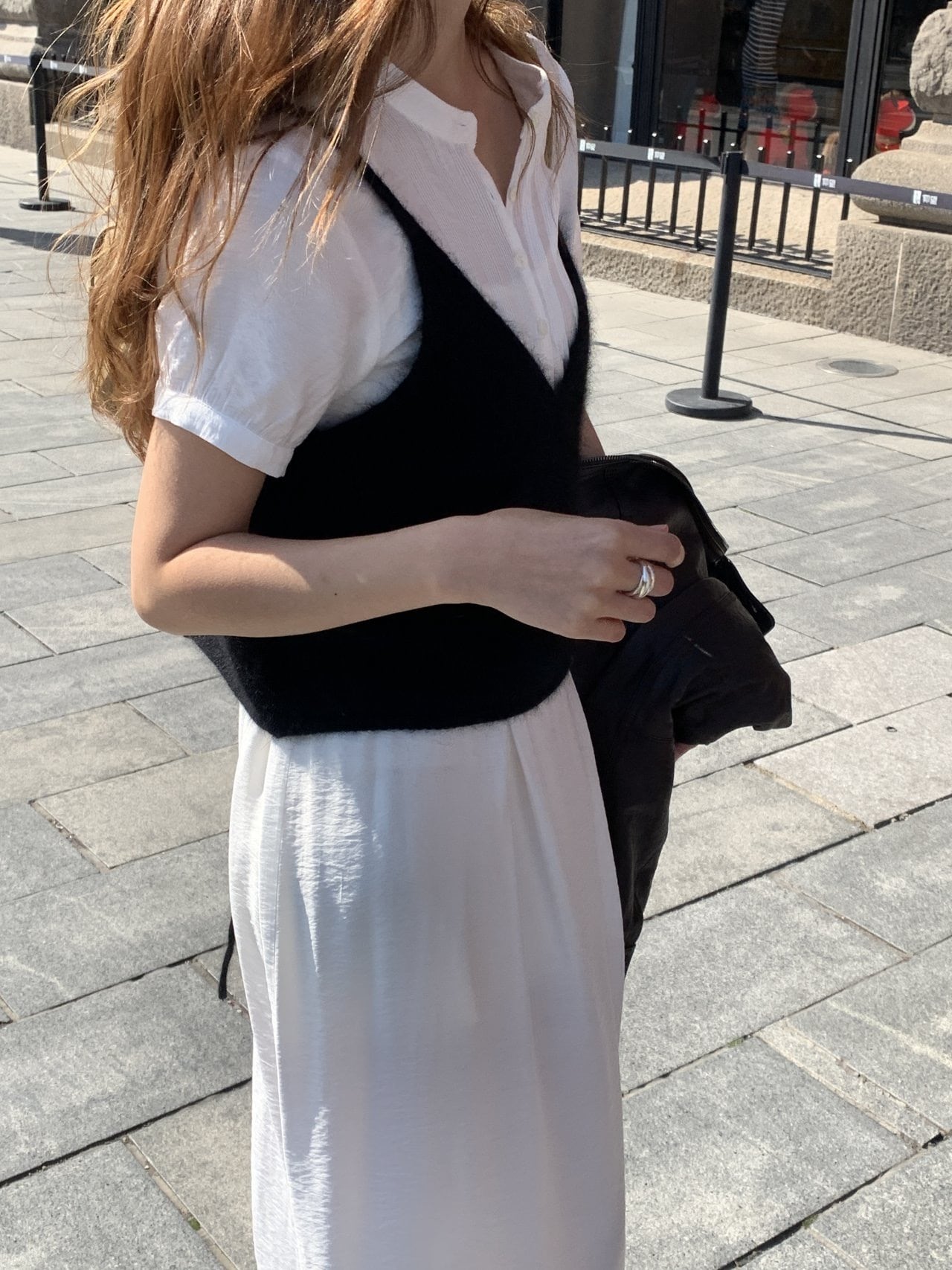 適度にクロップド丈で、シャツ、スリーブレス、Tシャツなど様々なインナーとレイヤードしやすいです、