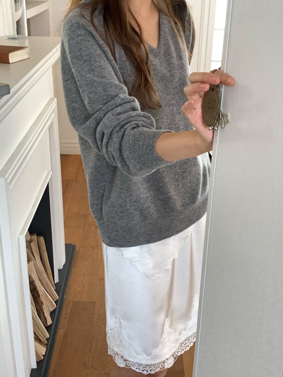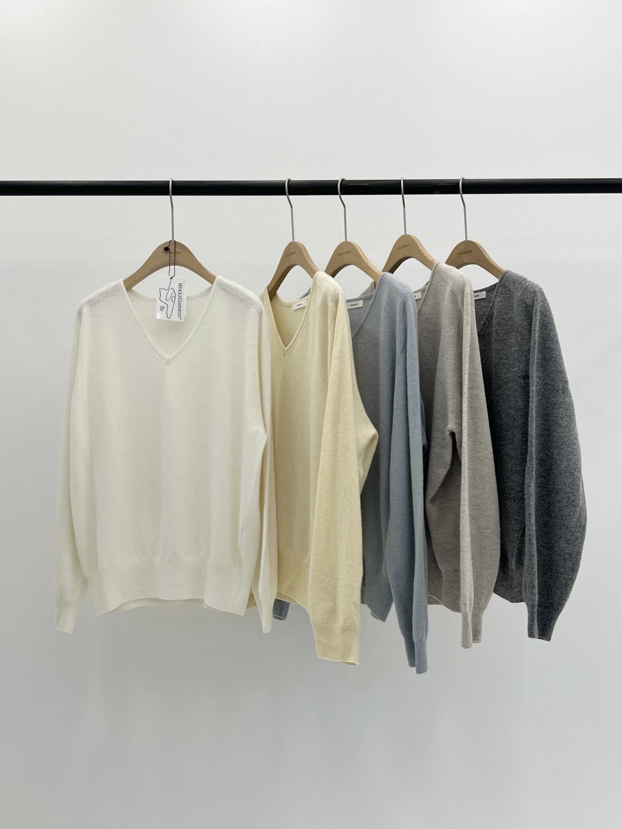 (予約) verveine / Adele whole-garment cashmere V-neck knit