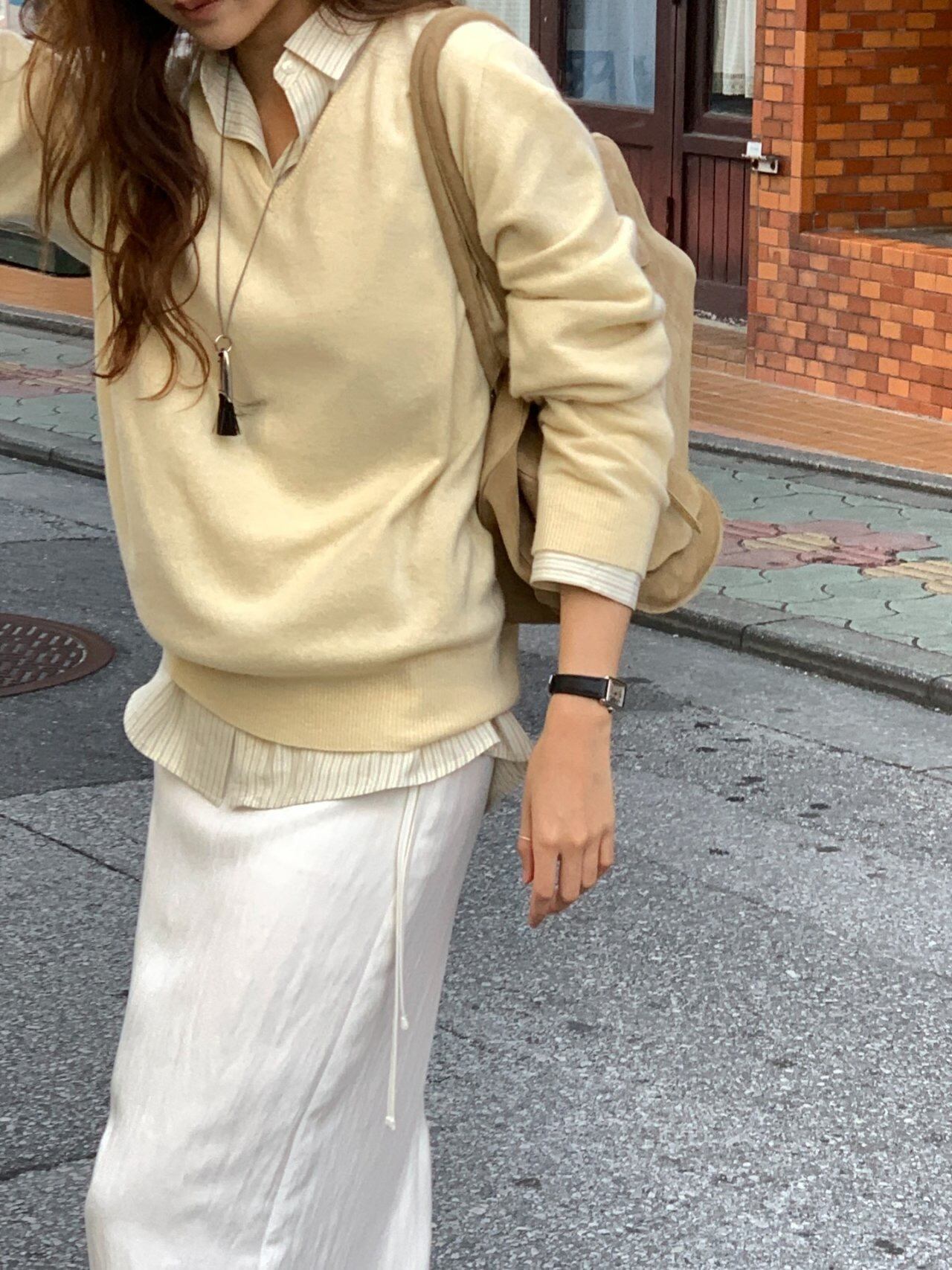 クラシックなVネックラインとゆったりとしたフィット感は、従来のヒールズニットのムードをそのまま引き継ぎながらも、