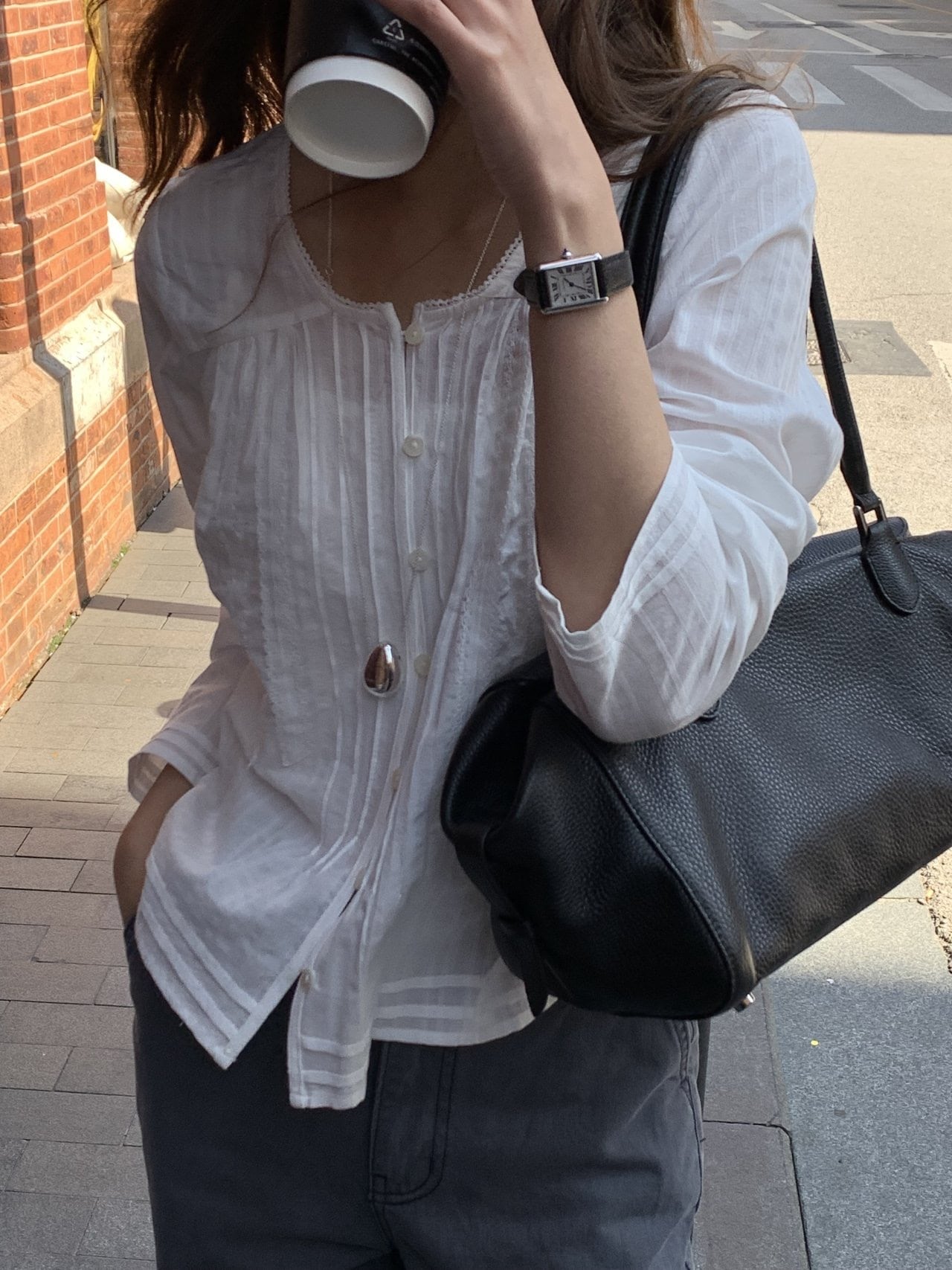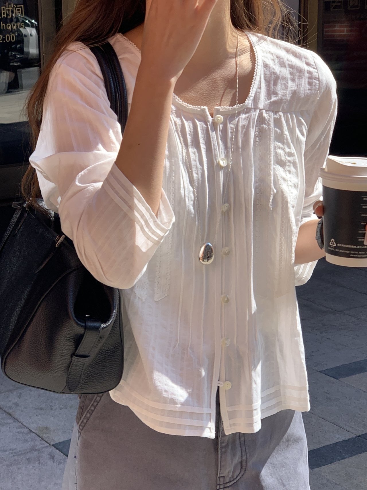 上部のシャーリングは過度でないボリュームを作り、繊細な雰囲気を完成させます。