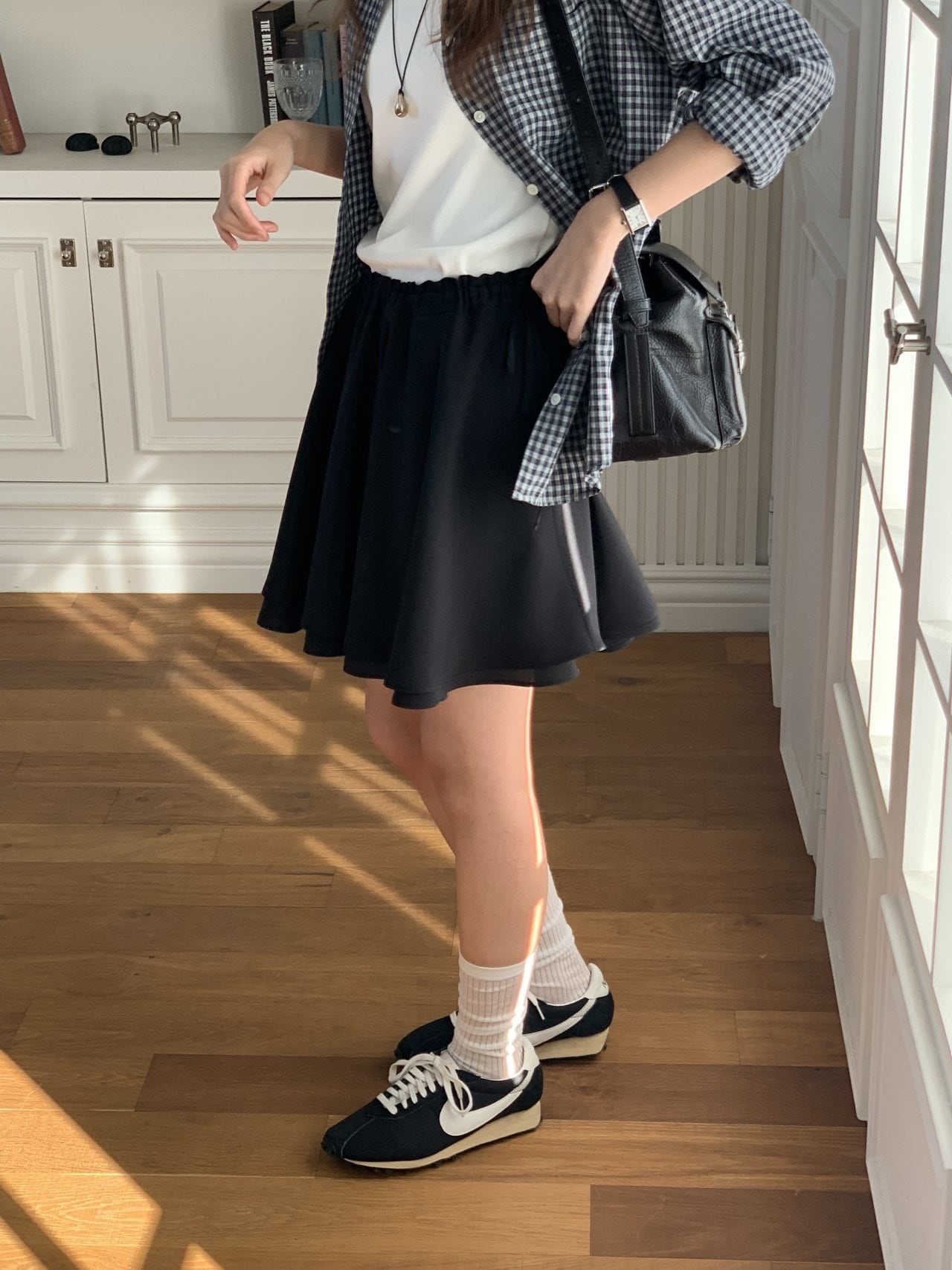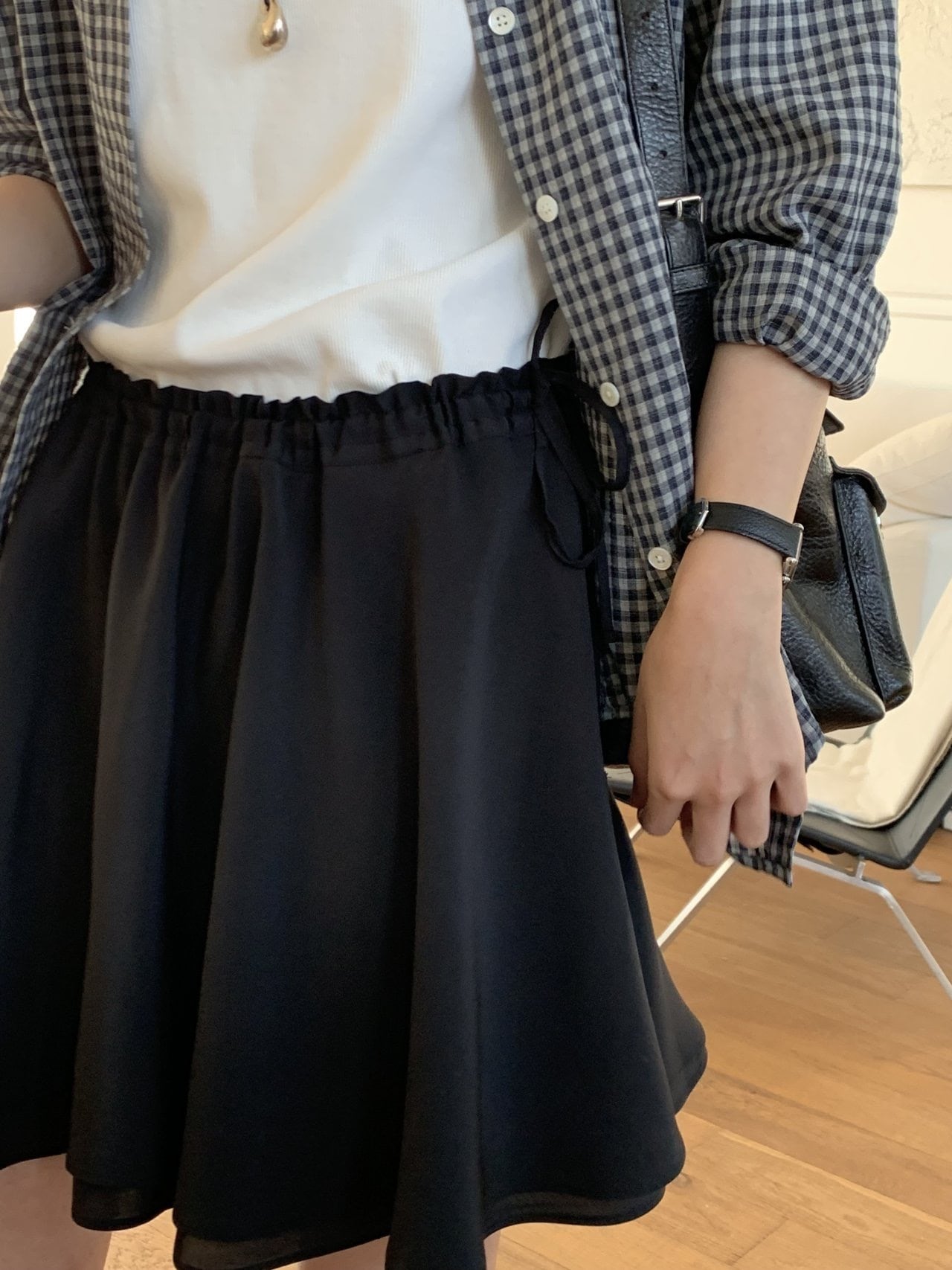 短めの丈にフレアラインが加わり、さまざまなムードを演出しやすいアイテムです。