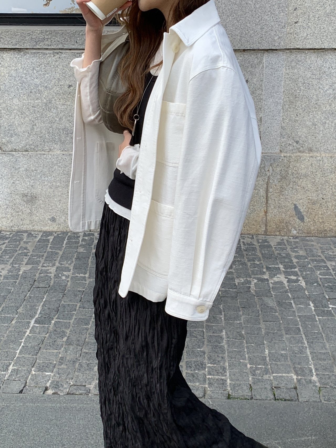 立体的なプリーツ組織が自然に施されており、特別なスタイリングをしなくてもポイントになるアイテムです。