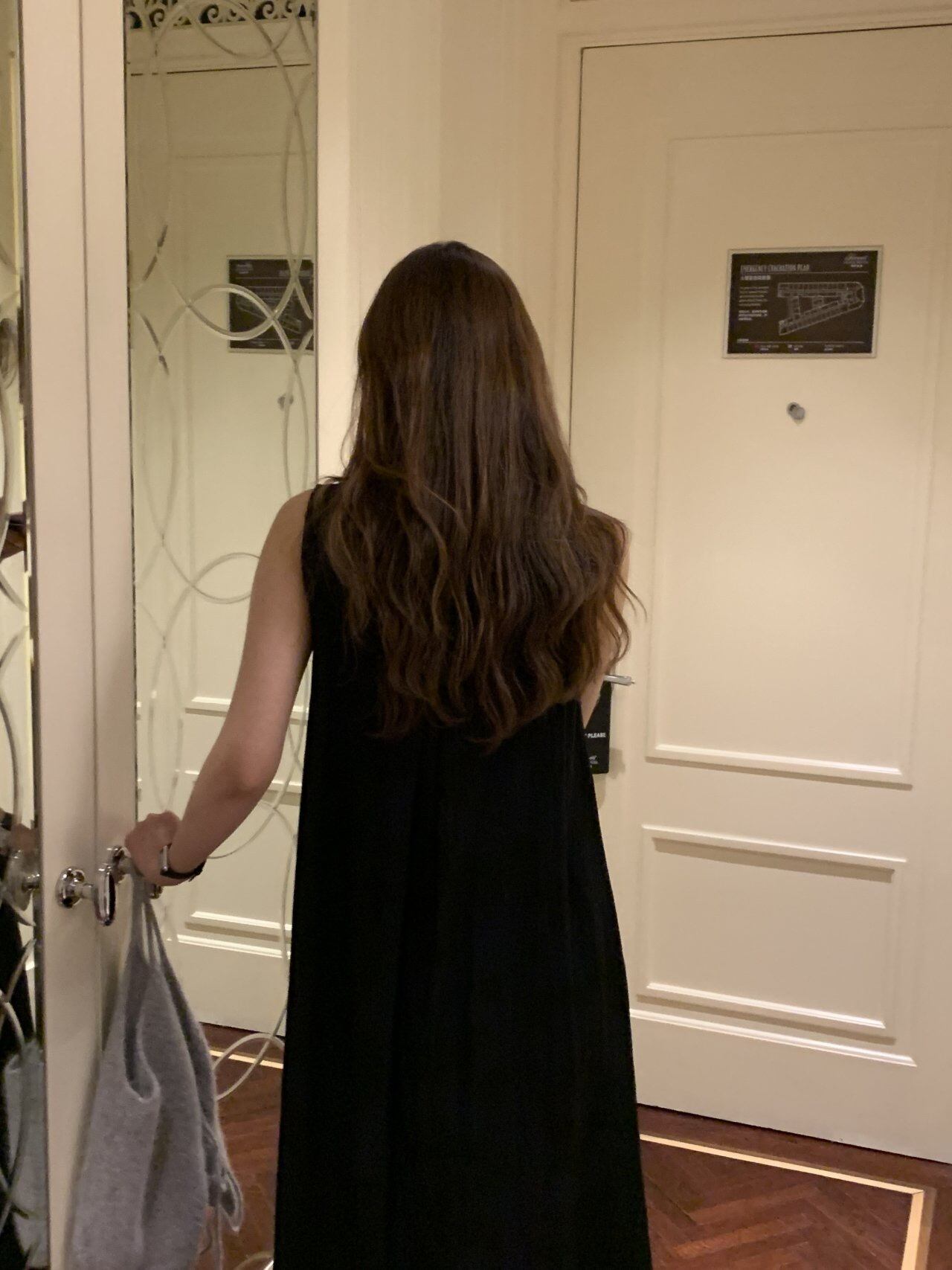 自然に流れるネックラインが印象的なロングワンピースです。