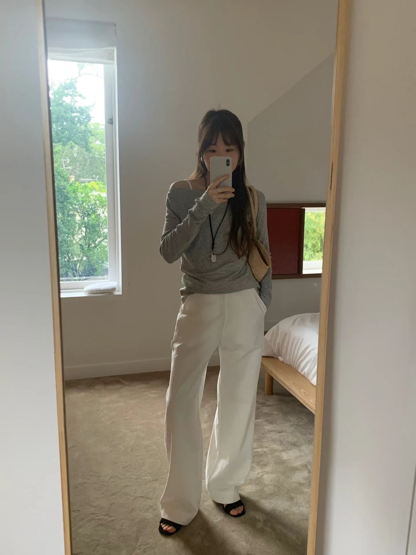 (即納) ounce / Bay Long Sleeve T (gray.ivory)