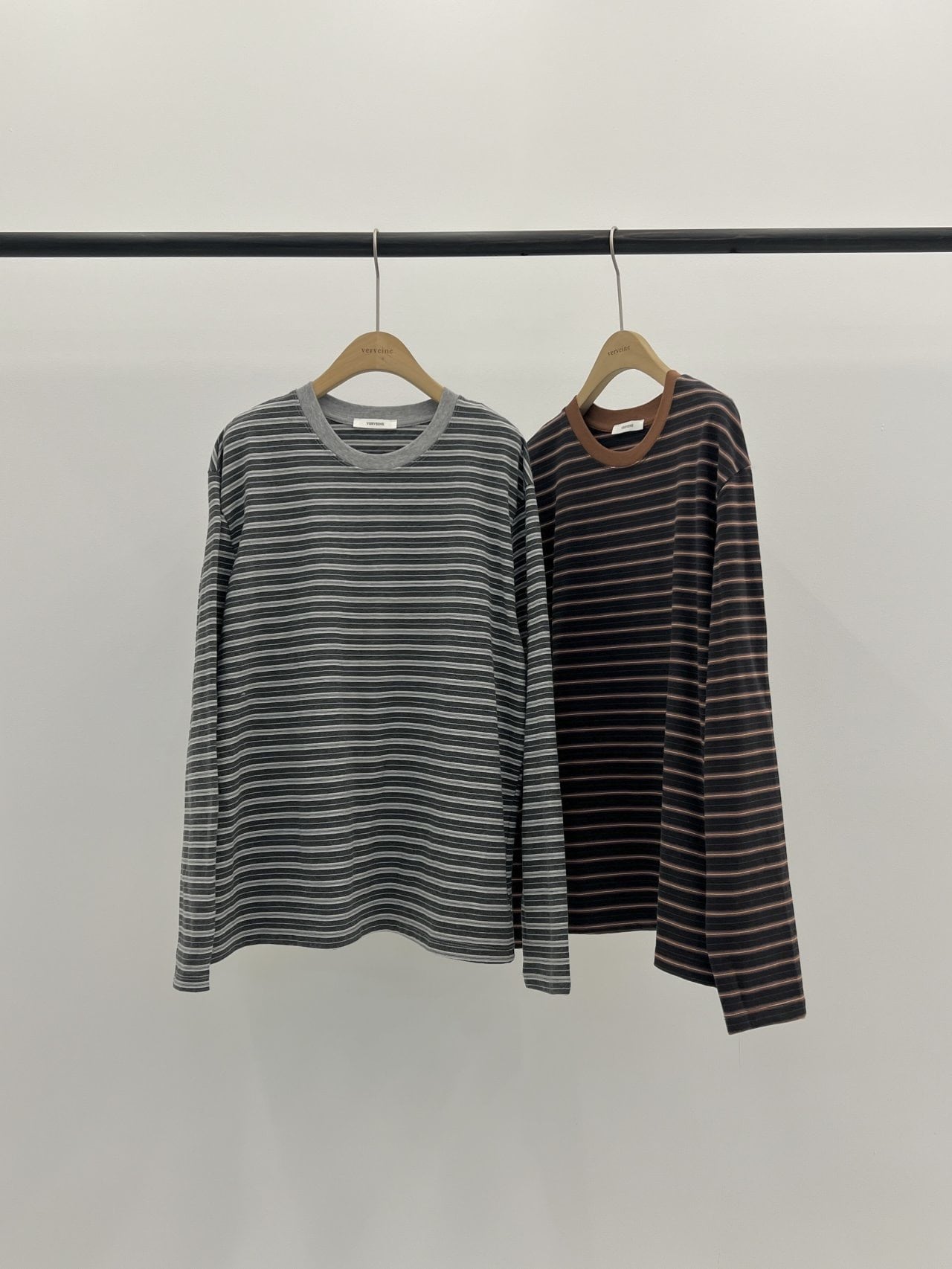 (即納) verveine / Ena Stripe Long Sleeve T-Shir (gray stripe)
