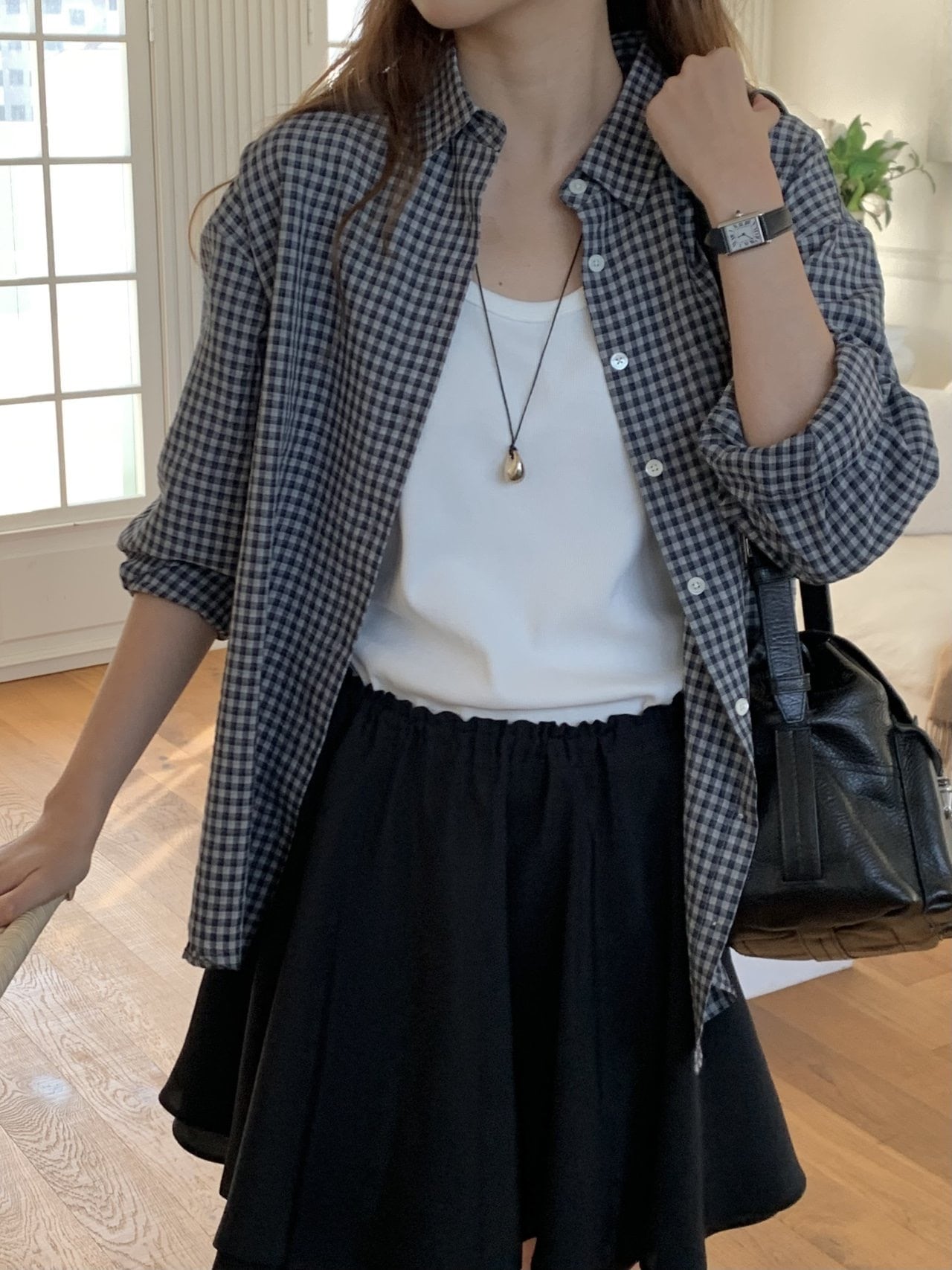 (即納) verveine / Ruen soft check shirt (deep navy)