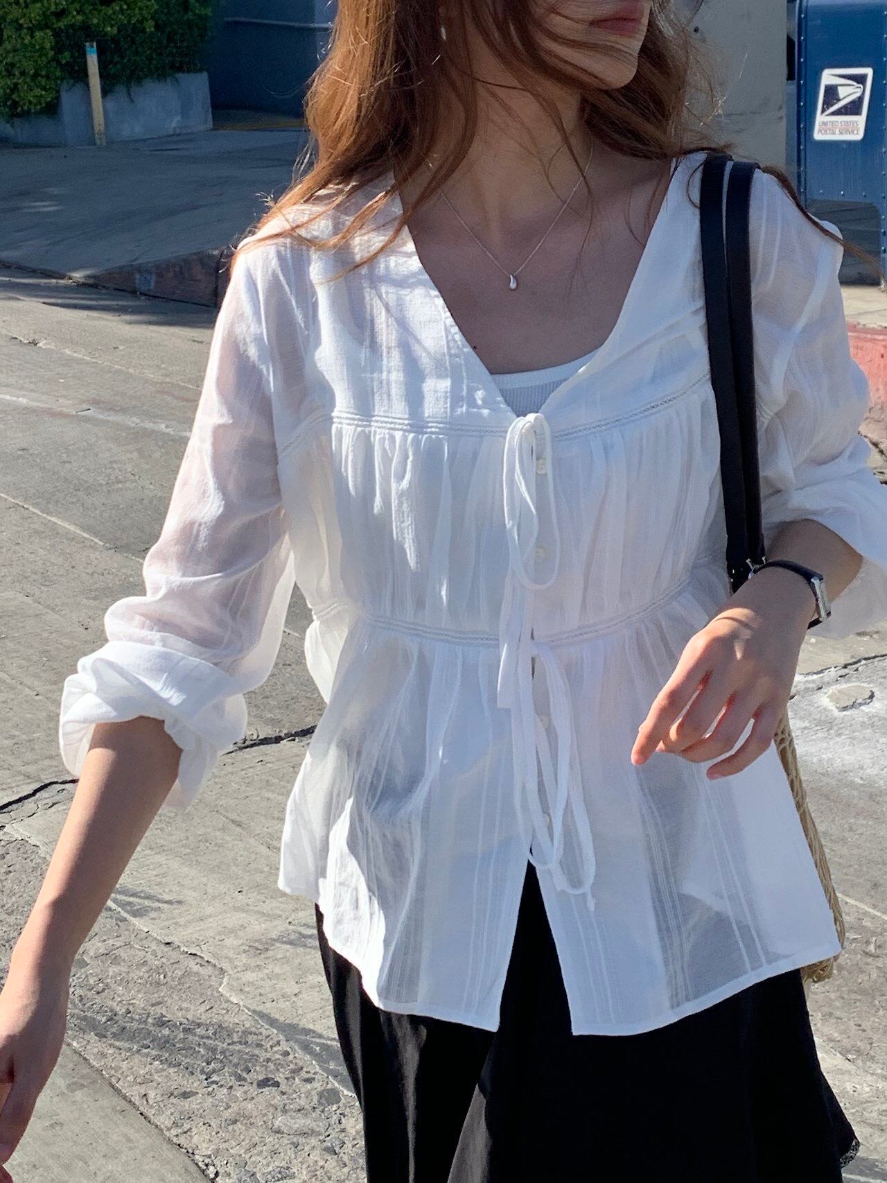 (予約) verveine / Arel V-neck string blouse