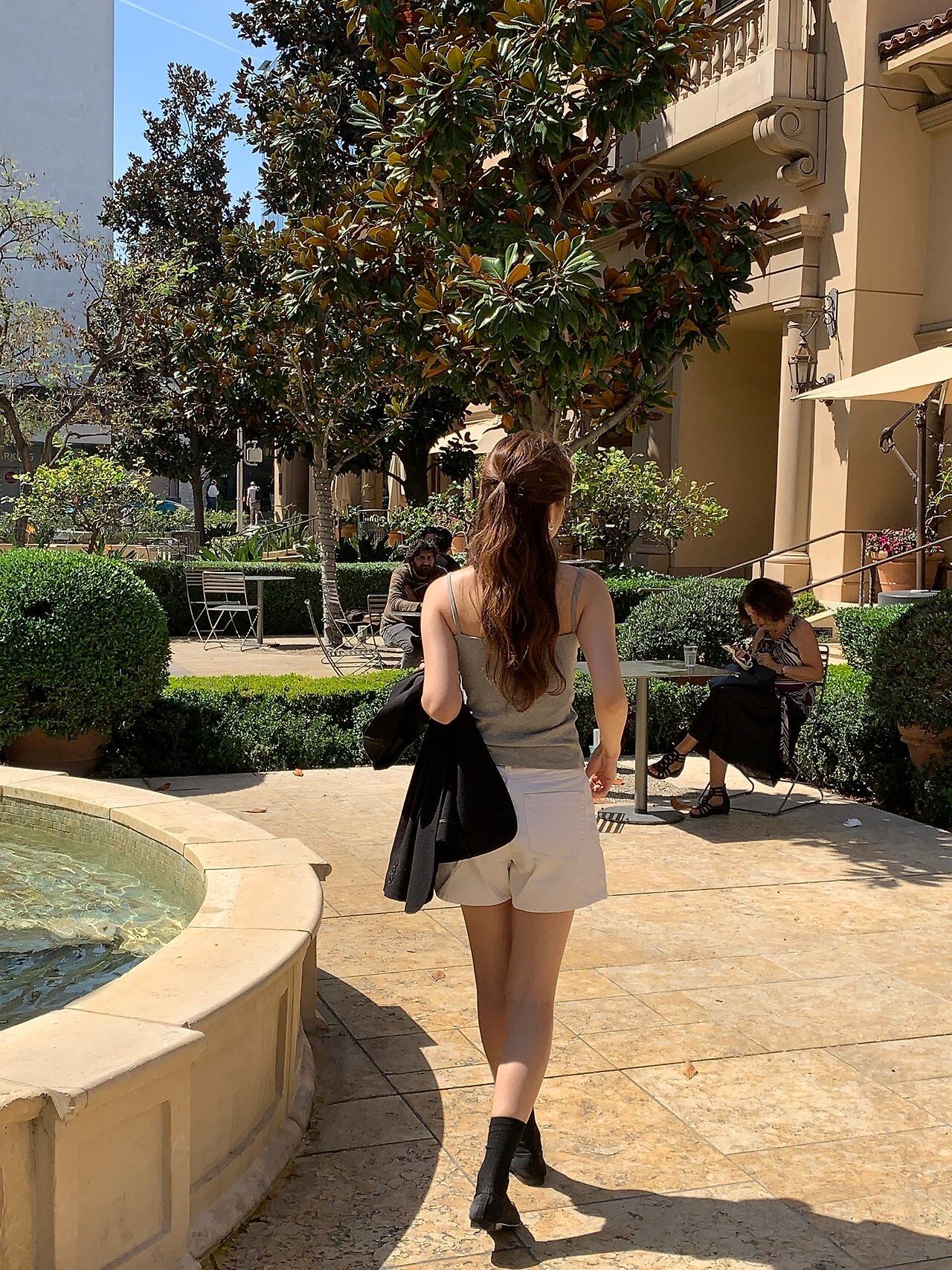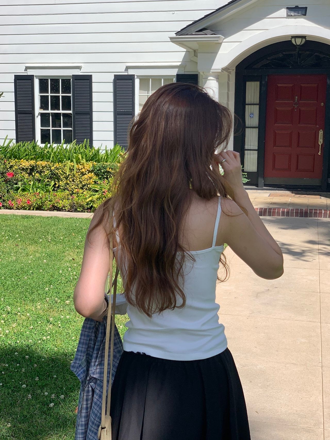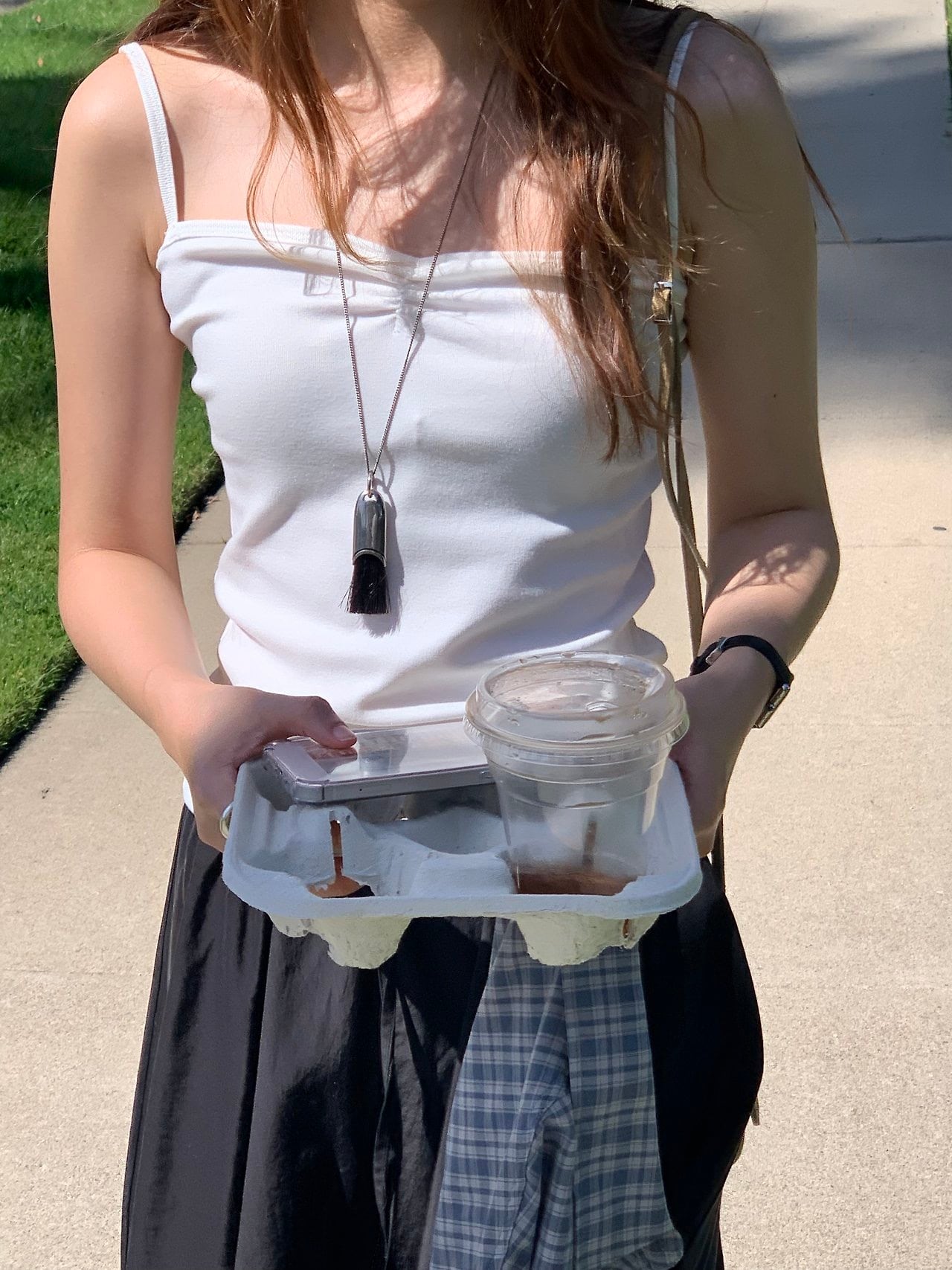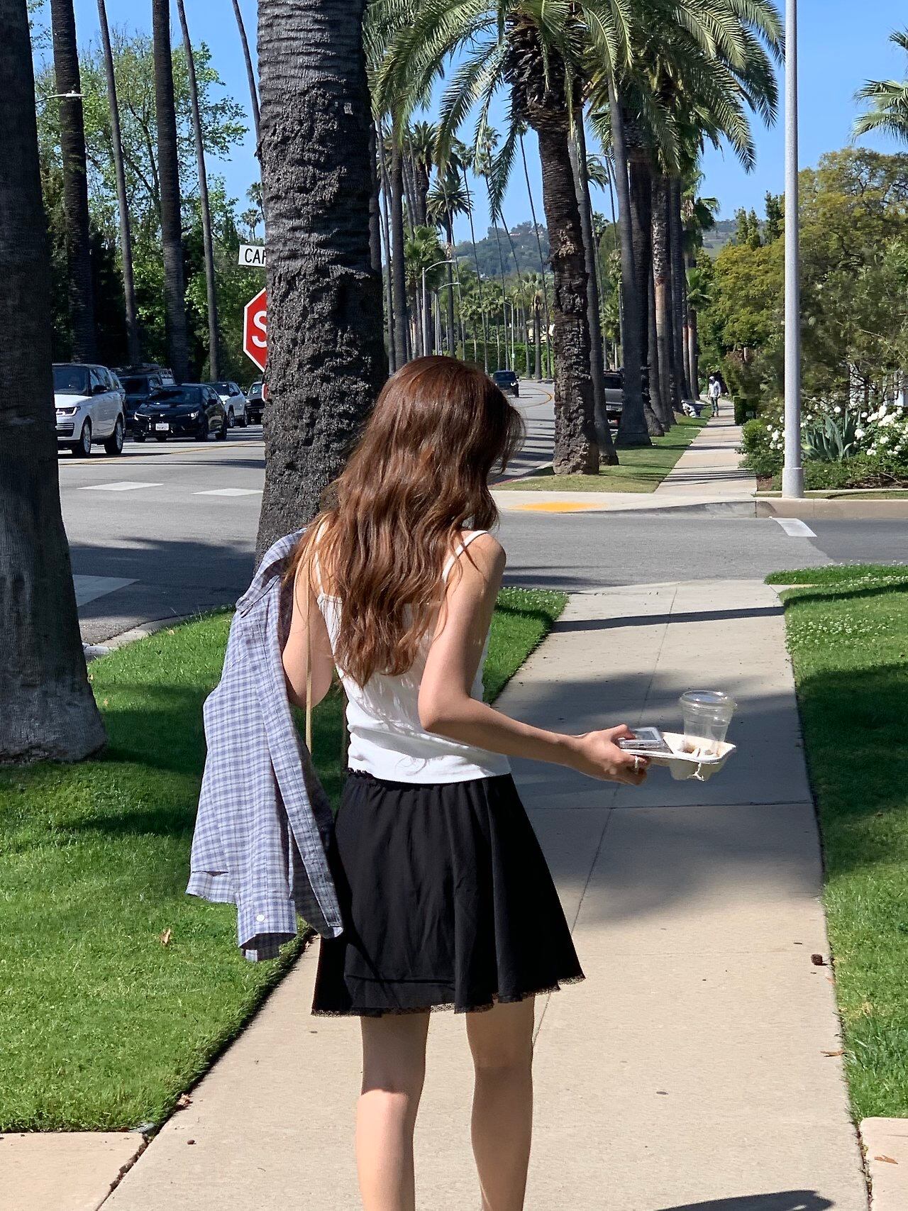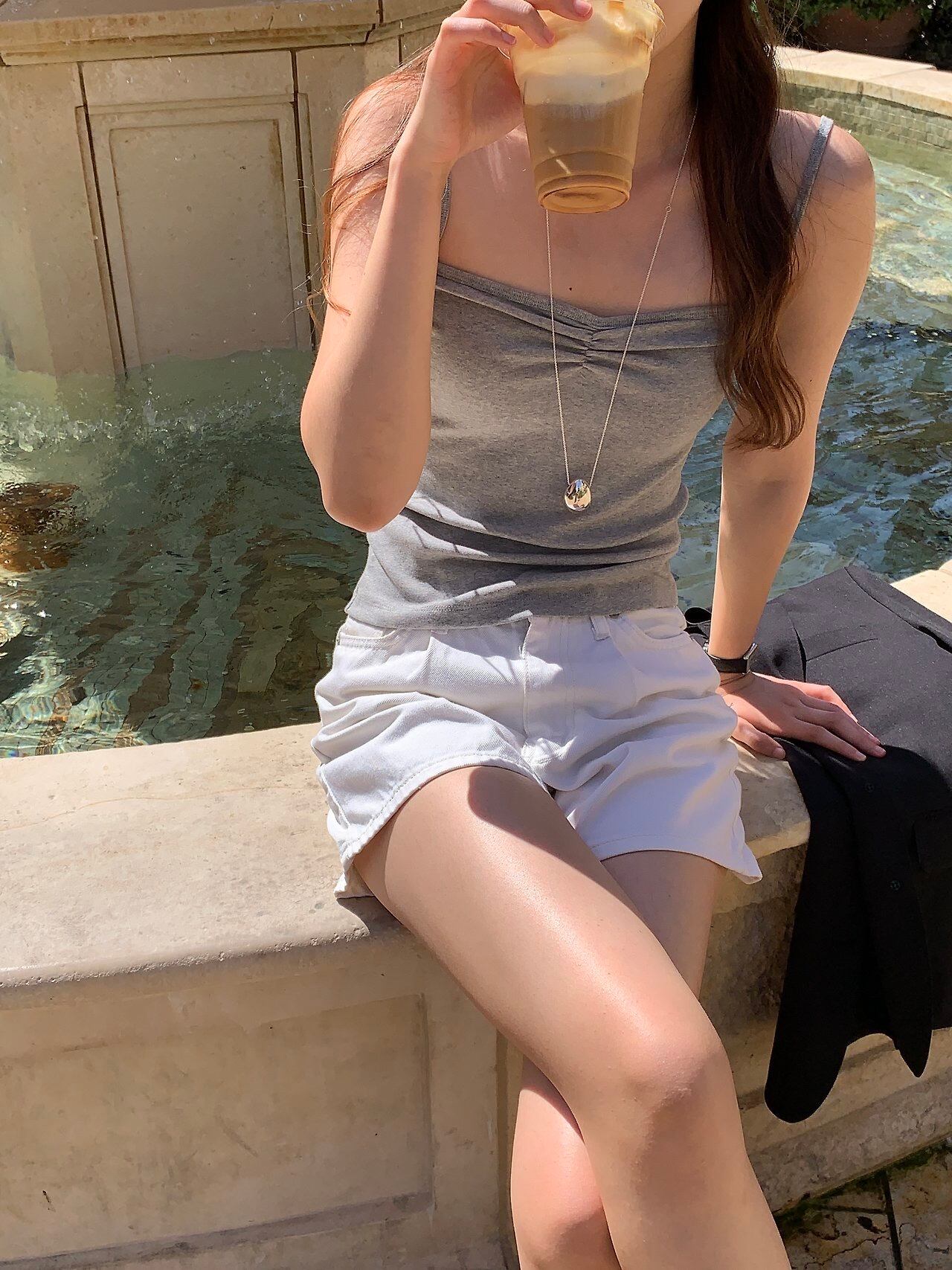 細いストラップで女性らしくミニマルなムードを完成させます。