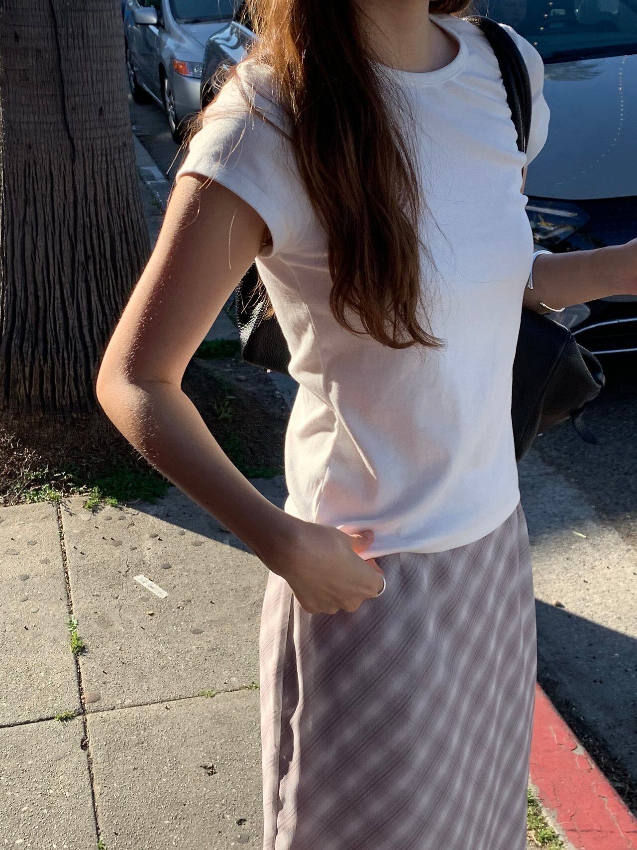 ボディラインに沿って自然にフィットするシルエットとすっきりとしたネックラインで