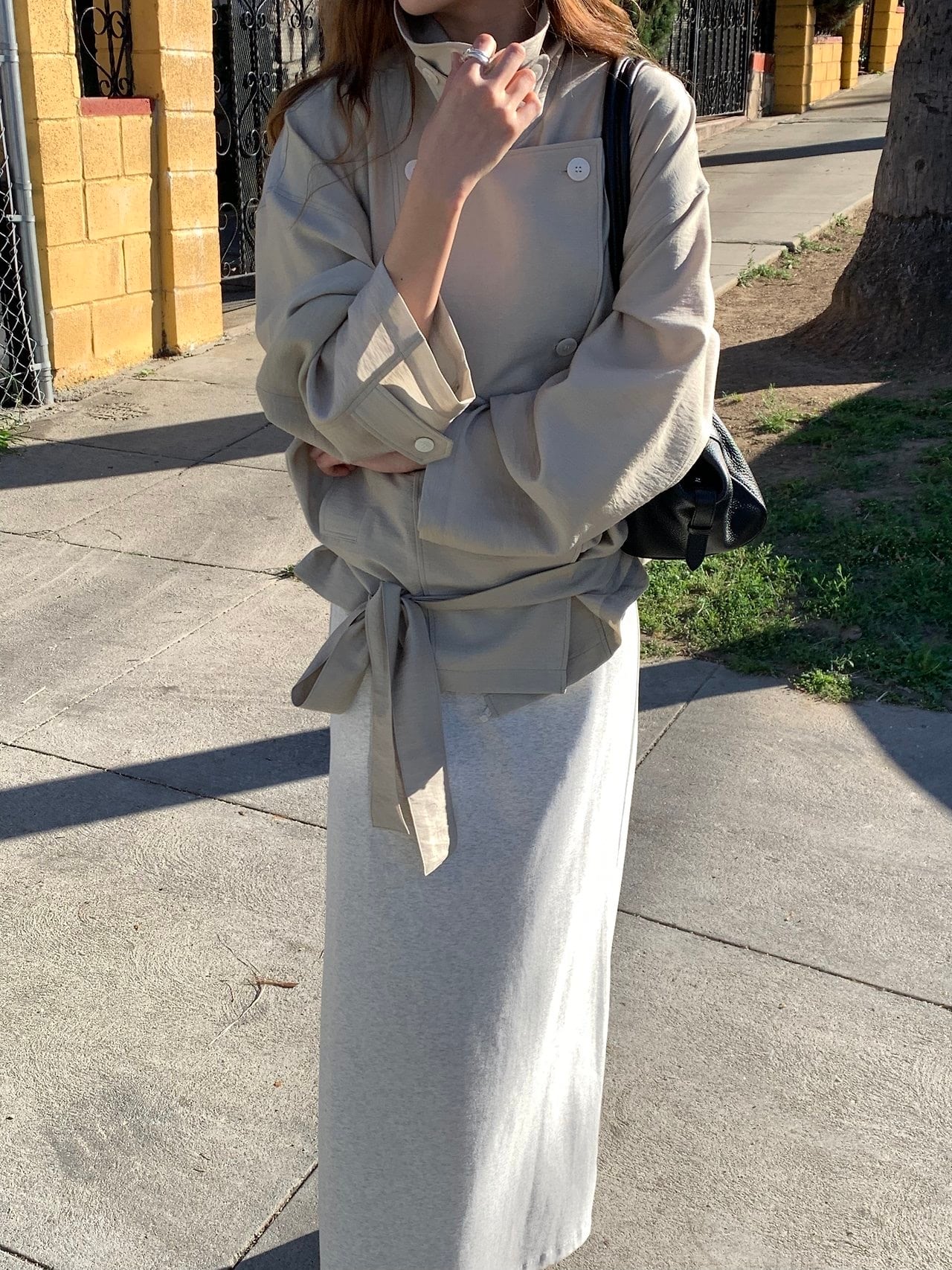 自然に落ちるストレートシルエットとウエストのストリングディテールで快適な着用感を提供いたします。