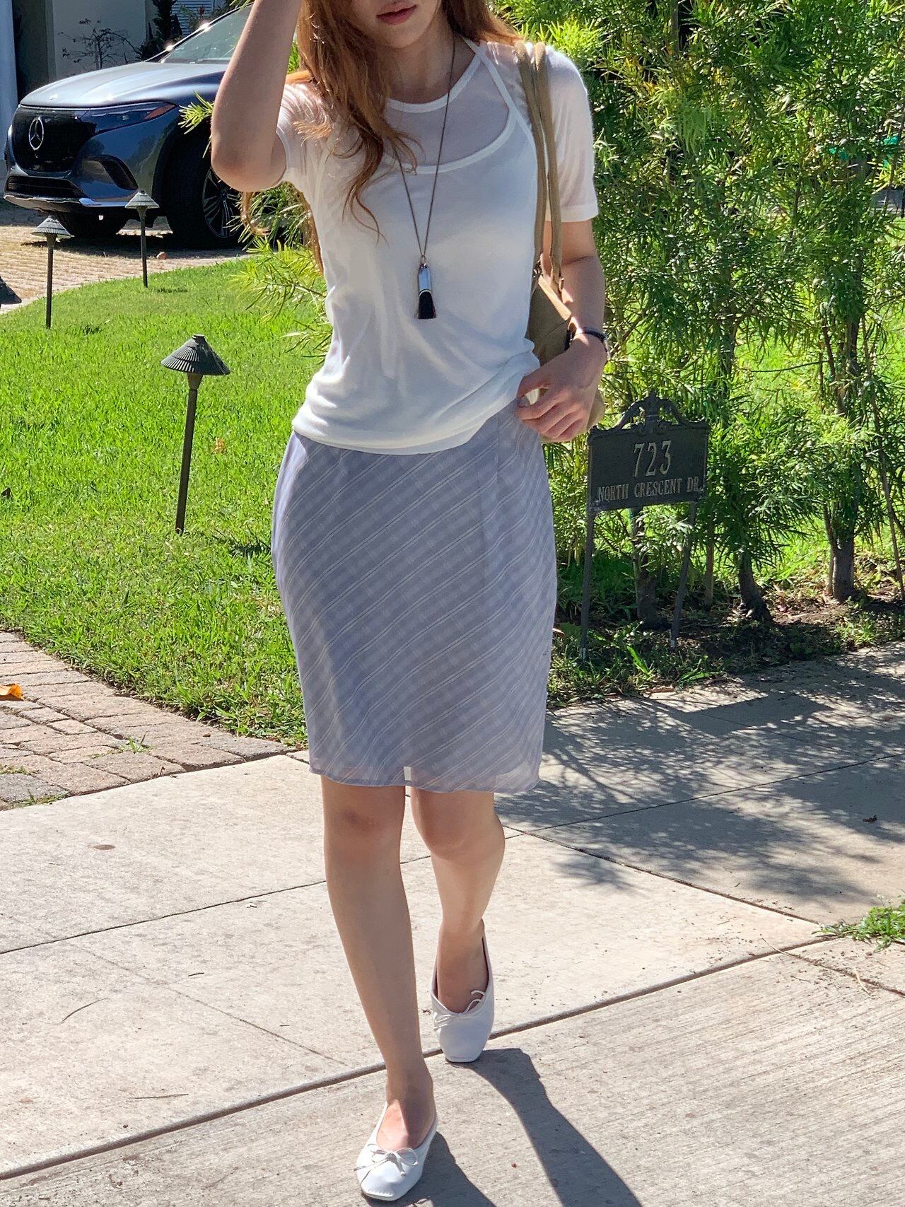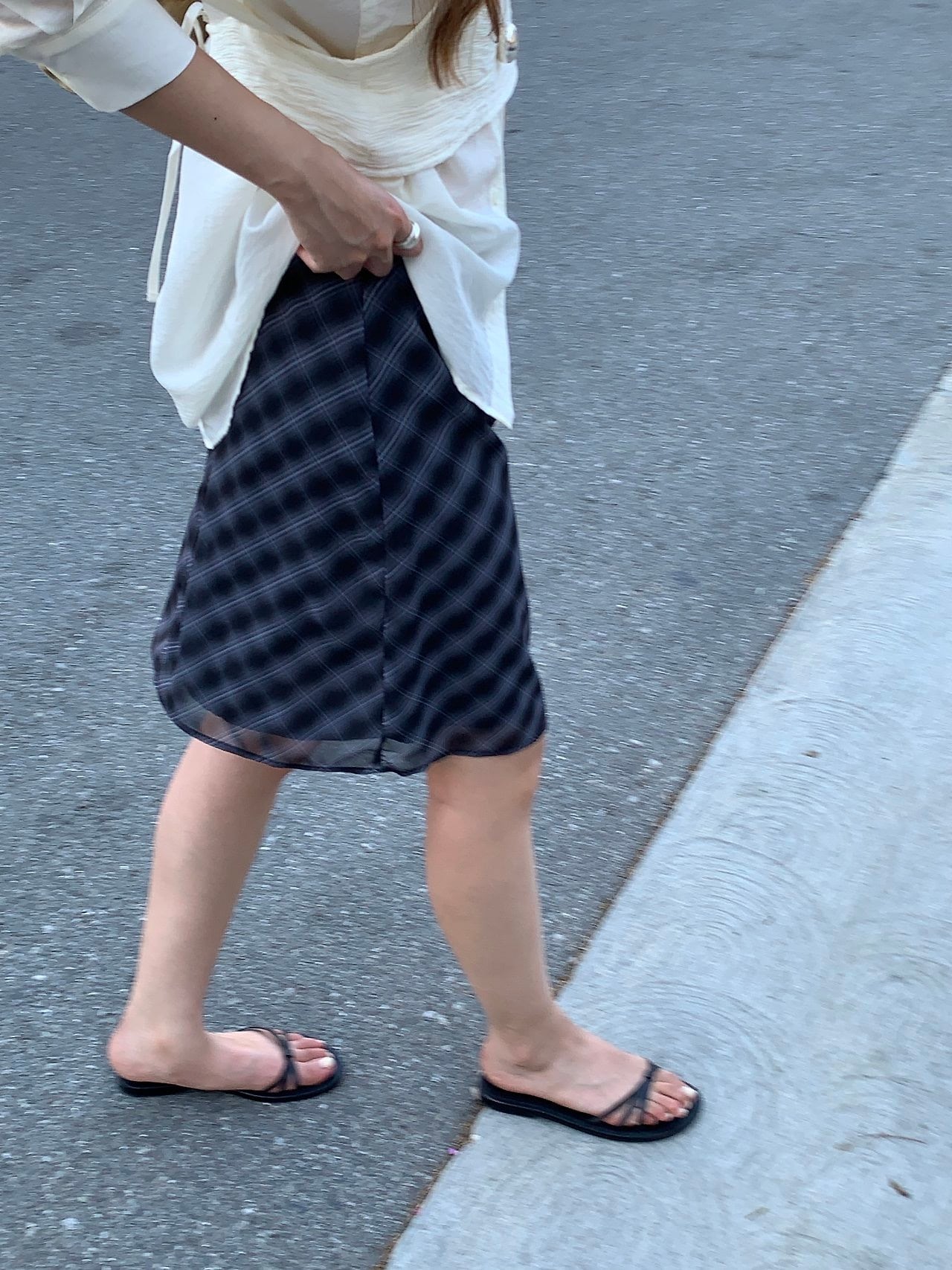 さりげないチェック柄と自然に流れるシルエットが女性らしいムードを演出いたします。