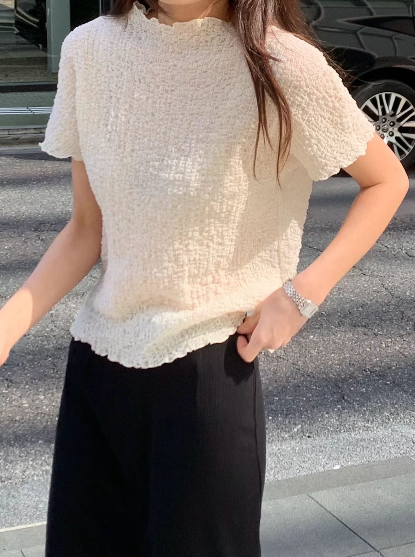 (即納) ounce / Cloud Linkle blouse (beige)